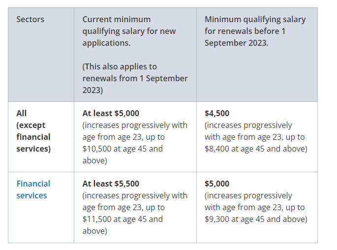 月薪要达到多少?答:固定月薪相当于当地PMET工资的前三分之一。这至少5000新币(随着年龄的增长,薪资要求逐渐增加,对于40多岁的人,最高可达10500新币。金融服务行业的候选人需要更高的薪水才能获得资格。)